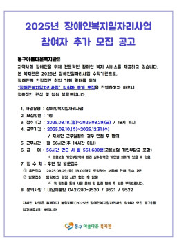 [내일이룸팀]2025년 장애인복지일자리사업 참여자 추가 모집 공고