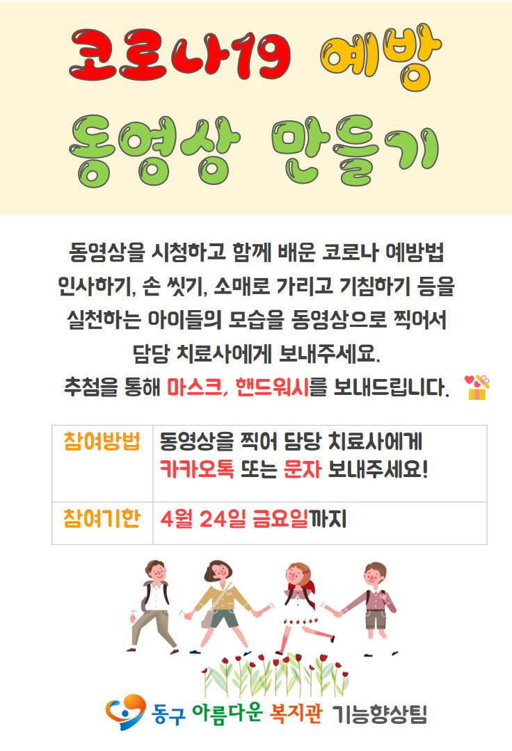 코로나 19 예방 동영상 만들기 프로그램을 실시하고자 합니다.